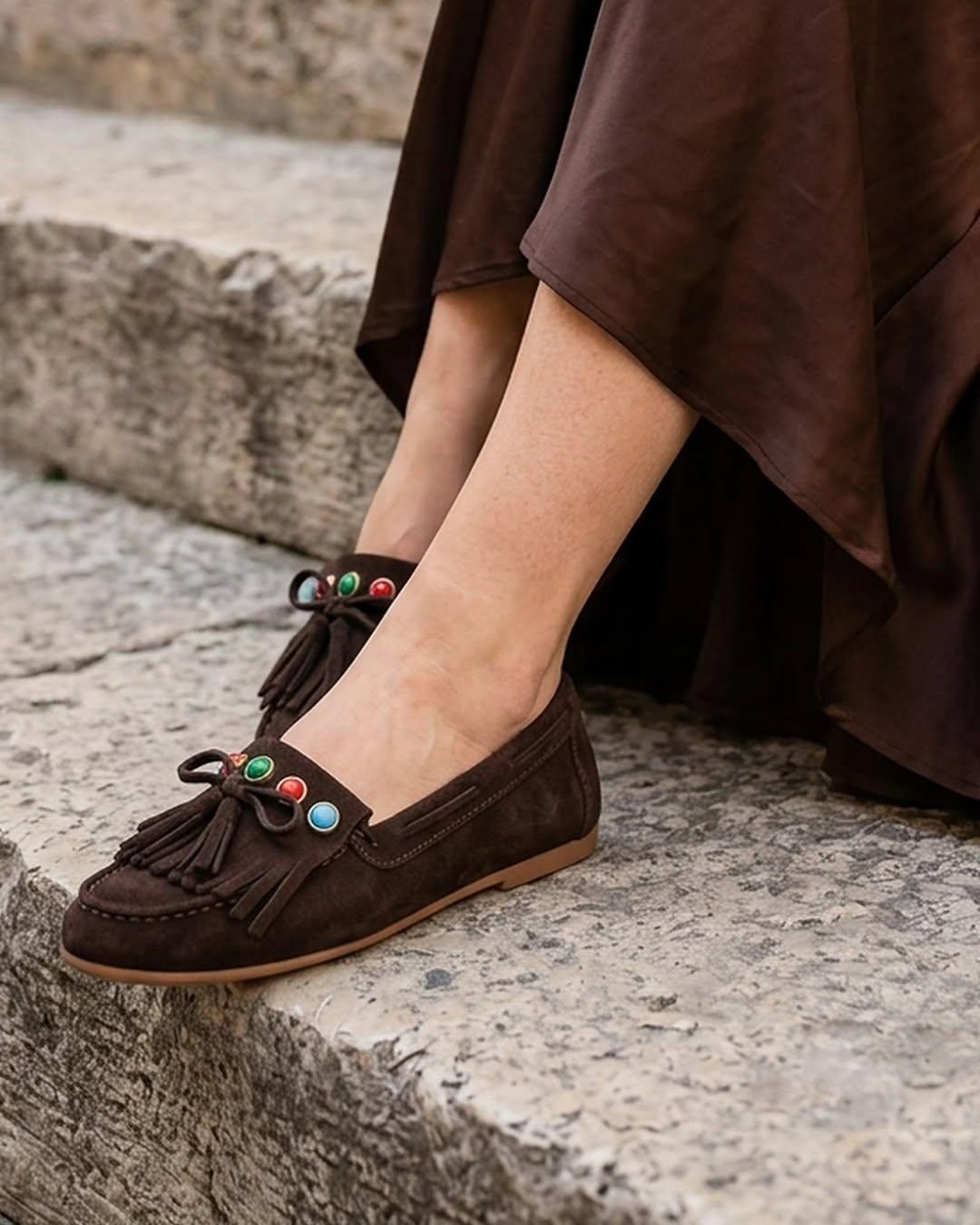 Braon kožne ženske mokasine Invento S260961