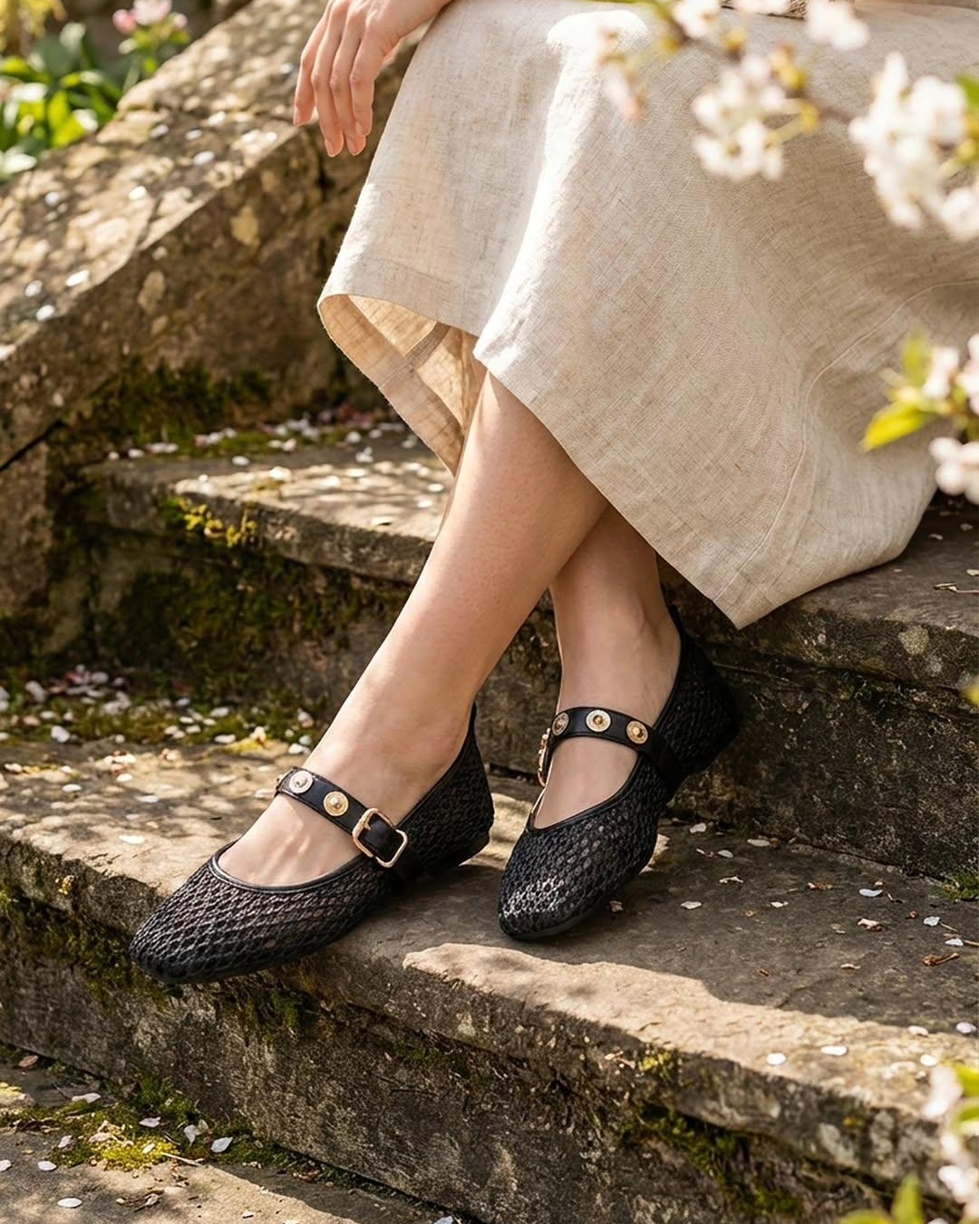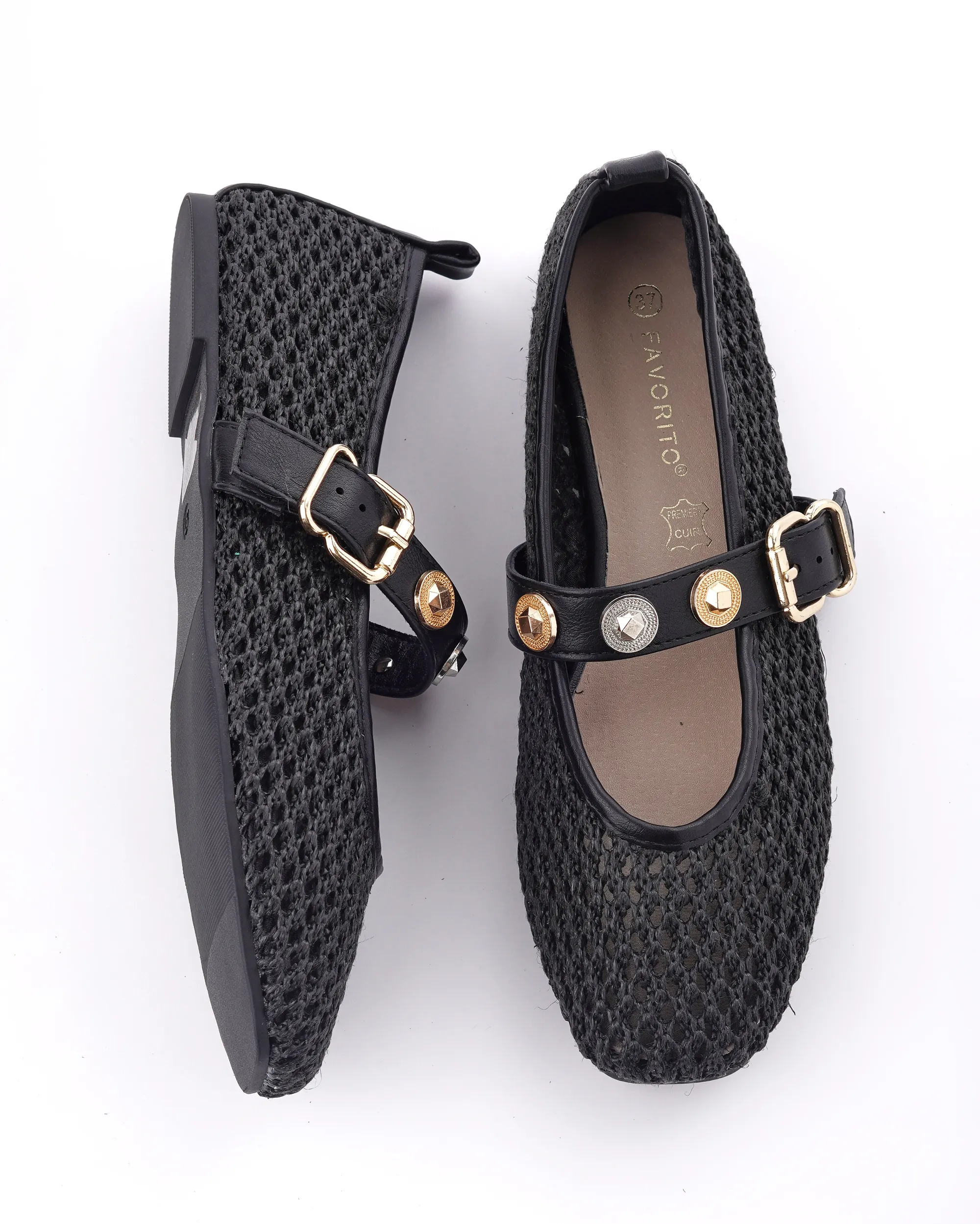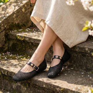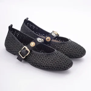 Ove trendi baletanke kombinuju lagani pleteni materijal sa elegantnim kaišićem ukrašenim nitnama i kopčom. Dizajnirane su za svakodnevnu udobnost, a njihova prozračna tekstura čini ih idealnim za tople prolećne i letnje dane.
