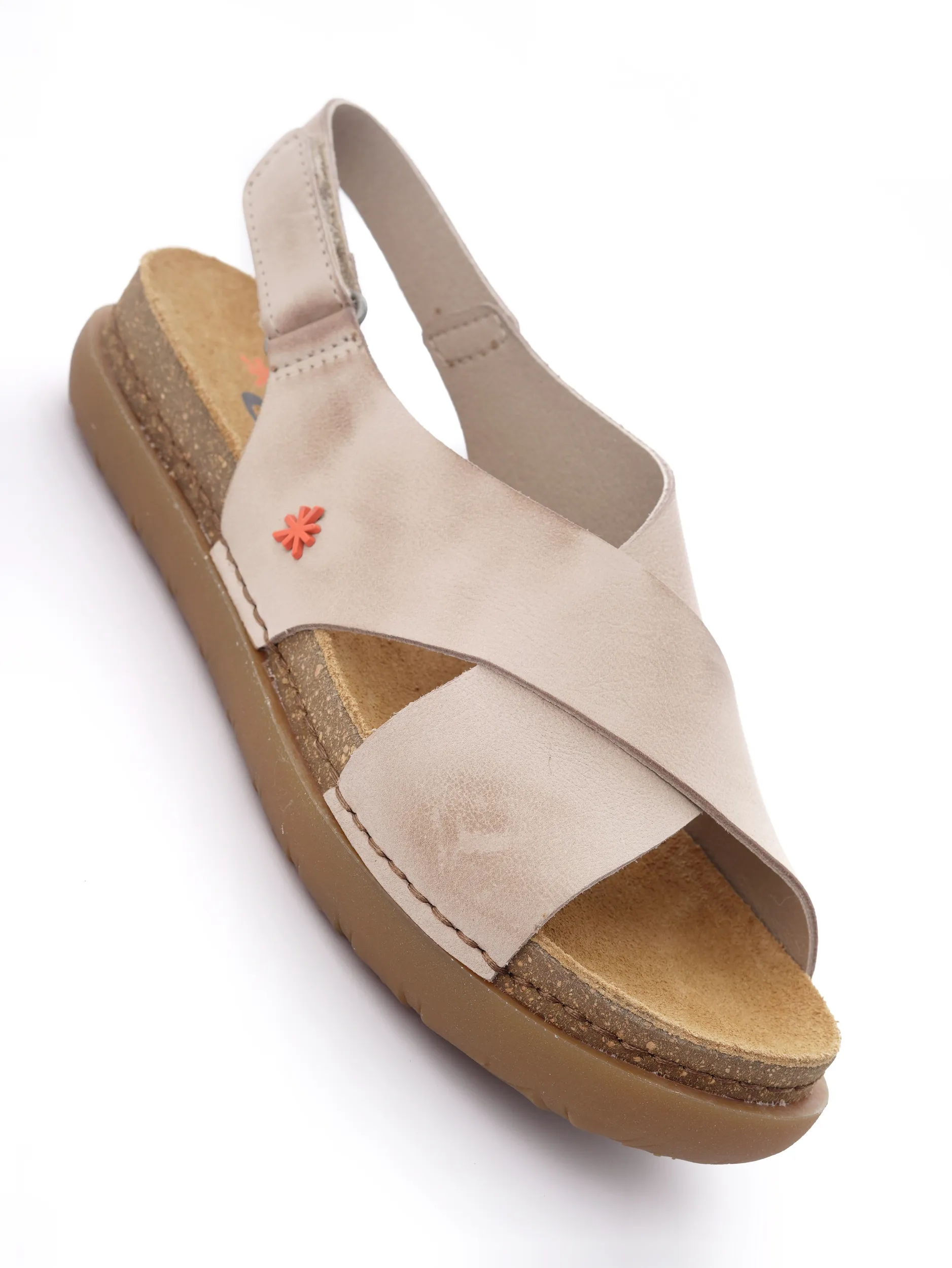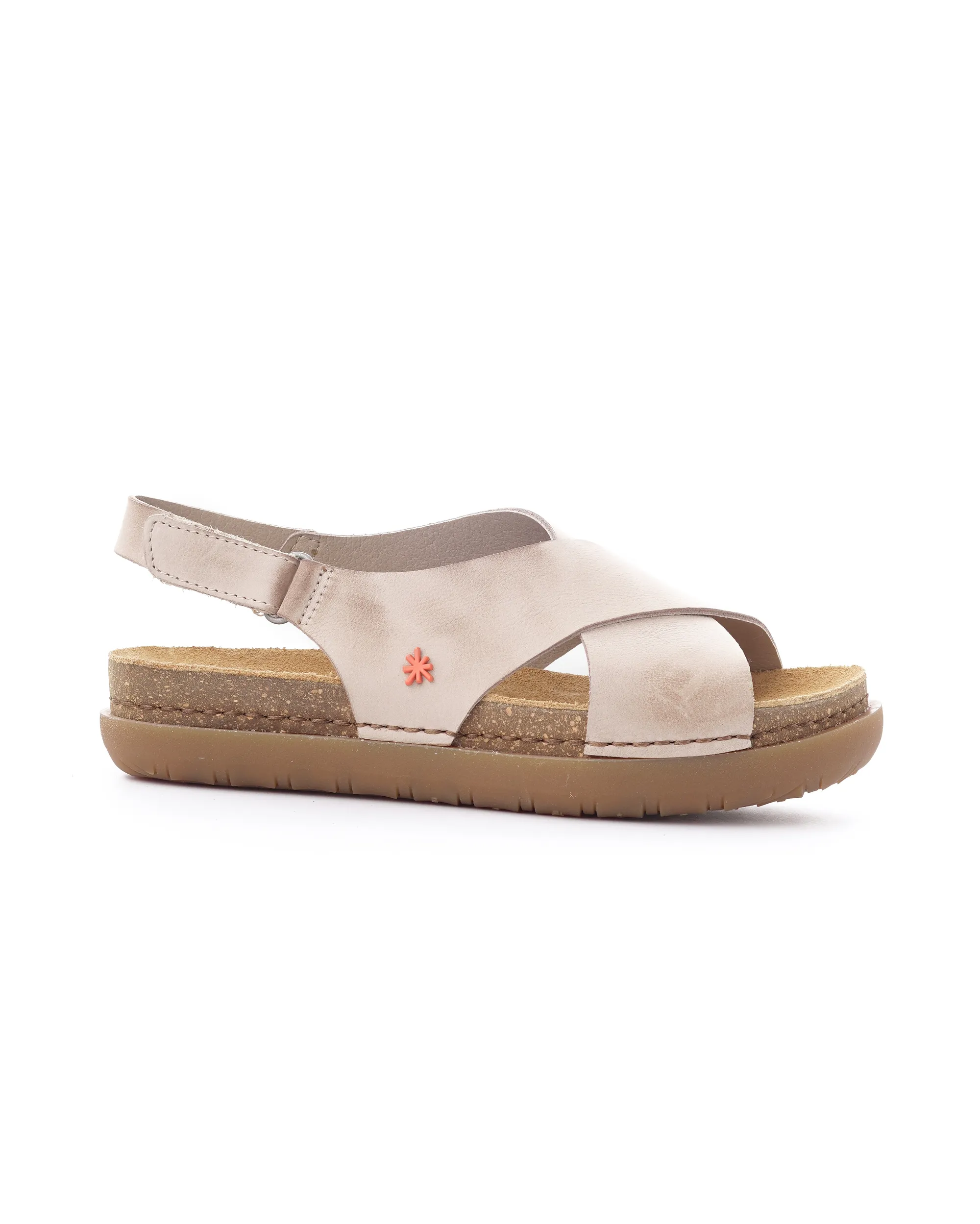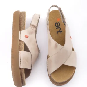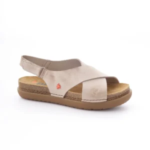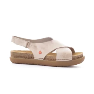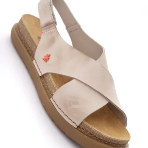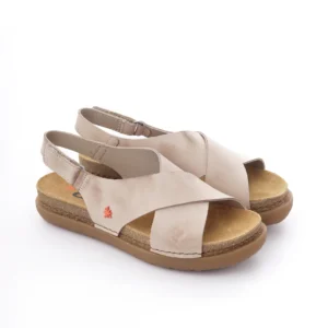 Ove prelepe krem sandale, izrađene su od visokokvalitetne prirodne kože koja garantuje dugotrajnost i vrhunsku udobnost. Prepoznatljive su po modernom dizajnu sa ukrštenim kaiševima i anatomskom đonu od plute, dok diskretni narandžasti logo cveta dodaje autentičan pečat ovom modelu.